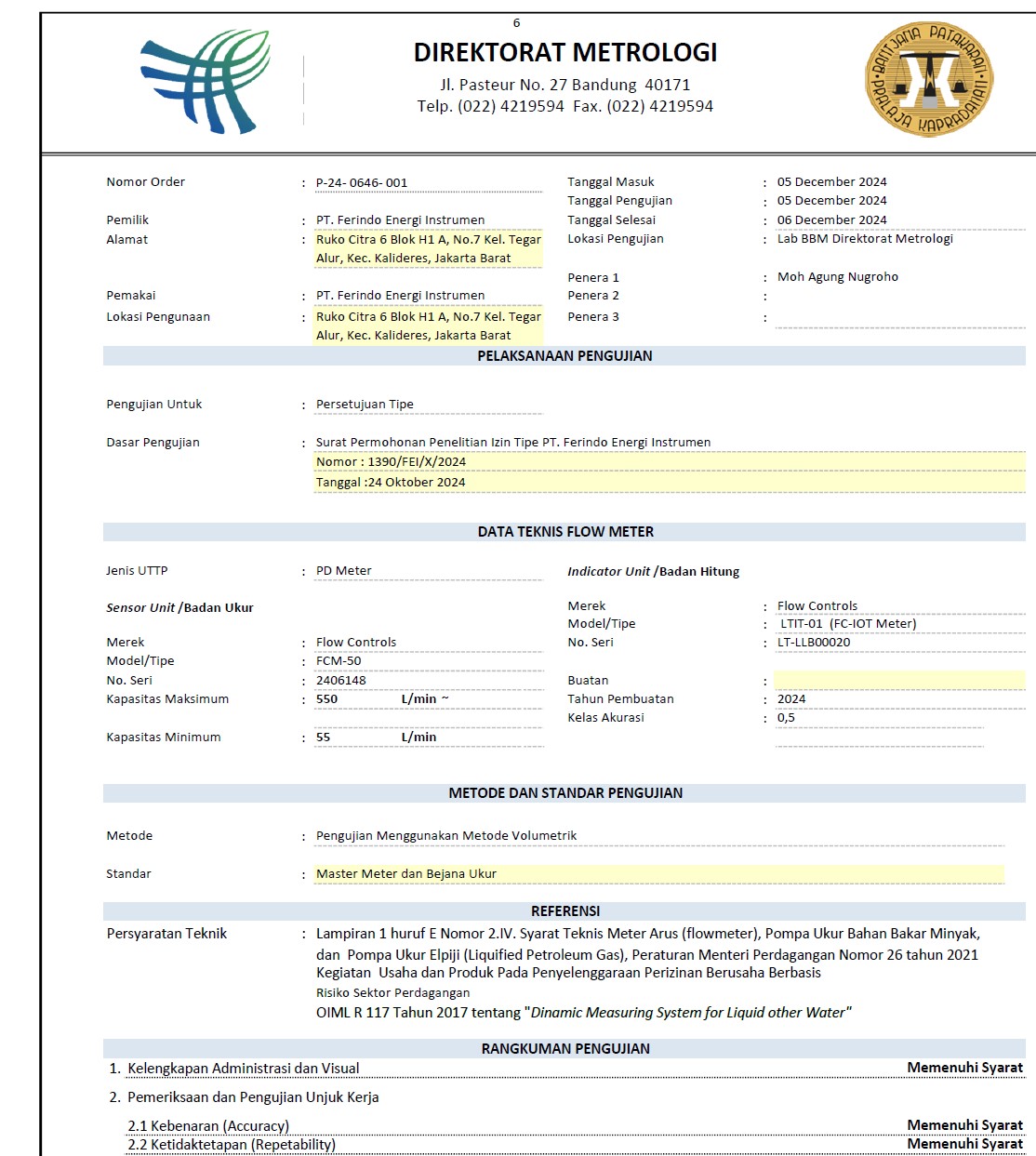 ⚠️ Proses ini cukup panjang dan ketat, hanya flow meter dengan kualitas tinggi dan akurasi yang stabil yang bisa lolos izin tipe ini.